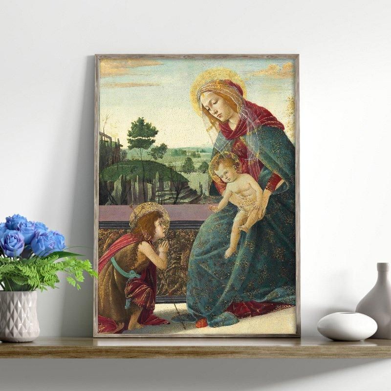 ボッティチェッリ 聖母子 洗礼者聖ヨハネ 宗教画 ルネサンス イタリア フィレンツェ 慈愛 信仰 純粋 神聖 希望 美 現代アート インテリア アート 芸術 絵画 壁掛け 15世紀