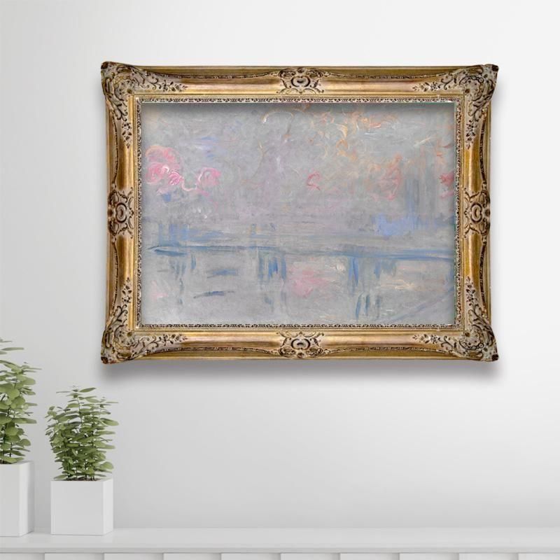 クロード・モネは、印象派を代表するフランスの画家です。彼の作品「チャリング・クロス橋」は、19世紀の風景画であり、ロンドンのテムズ川にかかる橋と霧の風景を描いたものです。この作品は、絵画としてだけでなく、インテリアとしても人気があり、お部屋に飾れば癒やしの空間を演出できます。アートに関心のある方だけでなく、日々の疲れを癒やしたい方にもおすすめです。色彩豊かな風景は、まるで美術館にいるような気分にさせてくれます。モネは、光の表現を追求し、その美しさをキャンバスに閉じ込めました。