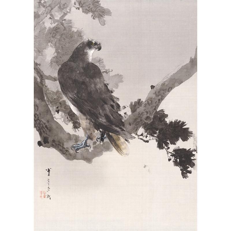 日本画 渡辺省亭 松に鷹 花鳥画 明治時代 アート 絵画 骨董品 コレクション インテリア 和室 和モダン 美術品 美しい 繊細 芸術 雄大 自然 鳥類 水墨画 伝統文化 額装