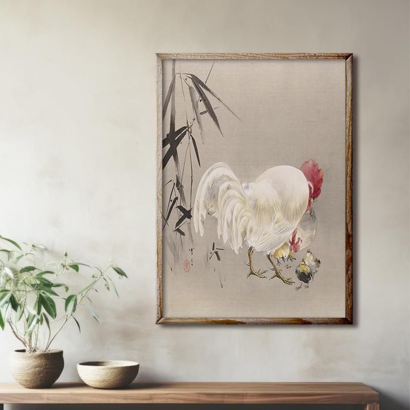 渡辺省亭 花鳥画 日本画 水墨画 琳派 写生 伝統工芸 美術 浮世絵 明治時代 芸術家 和風 インテリア アート リビング 玄関 癒し 空間づくり ライフスタイル 額装 暮らしを豊かに 絵画 雛に双鶏図