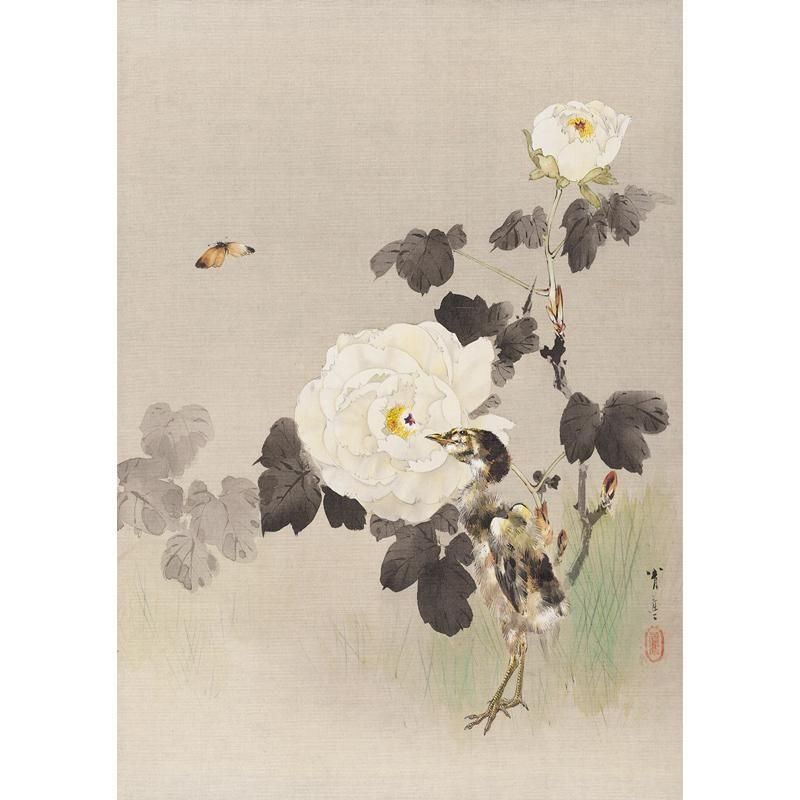 渡辺省亭 花鳥画 日本画 水墨画 琳派 写生 伝統工芸 美術 浮世絵 明治時代 芸術家 和風 インテリア アート リビング 玄関 癒し 空間づくり ライフスタイル 額装 暮らしを豊かに 絵画 牡丹に雛図
