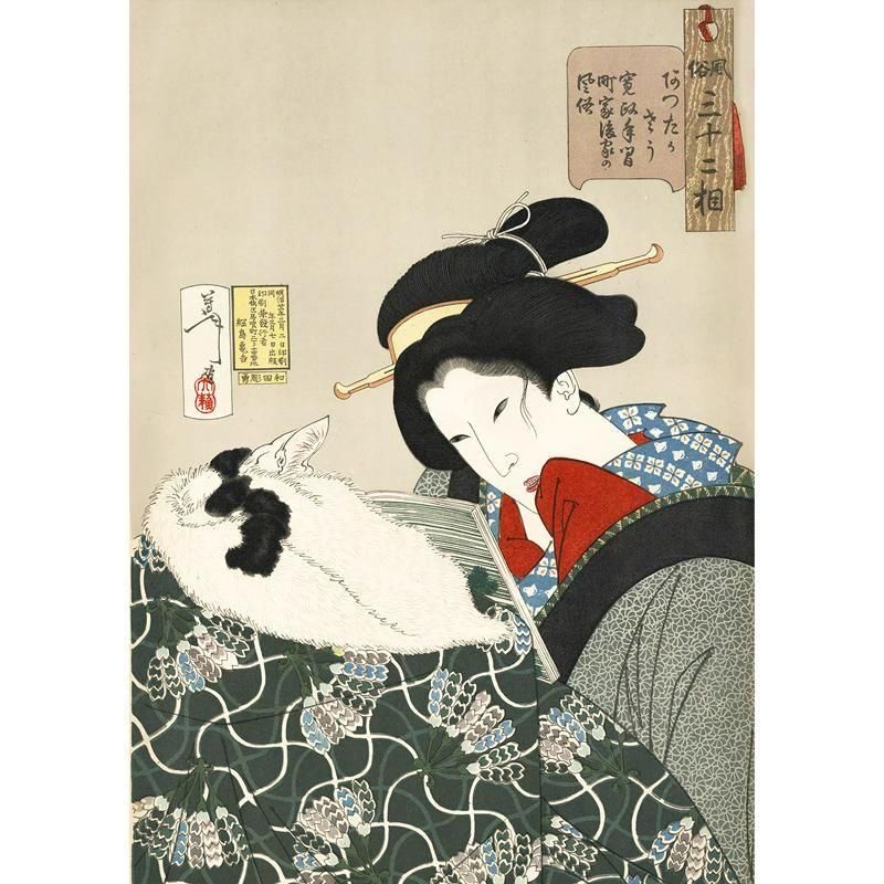 月岡芳年 風俗三十二相 浮世絵 浮世絵美人画 和風インテリア アート 複製画 ポスター 部屋に飾る 日本画 葛飾北斎 歌川広重 明治時代 美術 芸術家 19世紀 読書 こたつ 猫の絵 玄関 リビング 和室 和モダン おしゃれな部屋 高級感のある絵