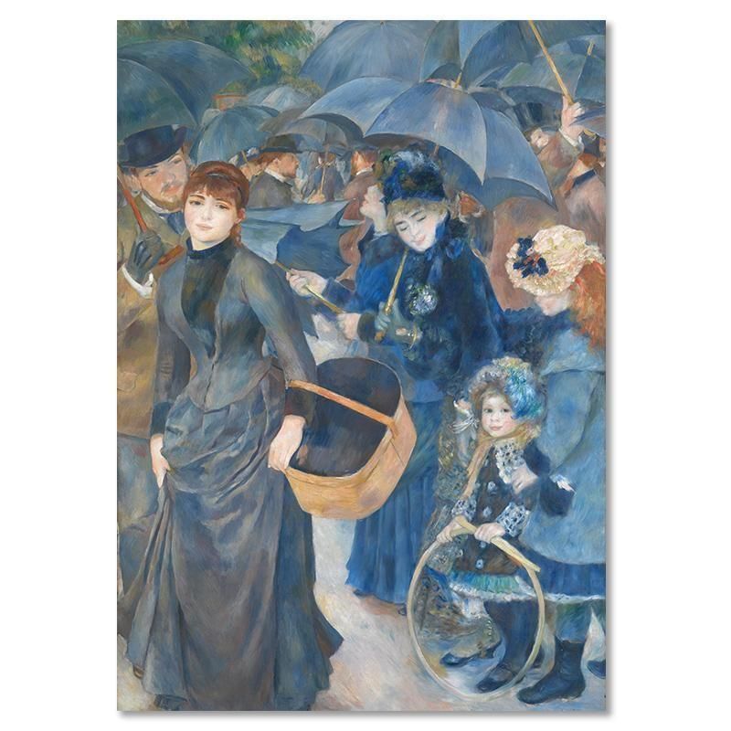 ルノワール 傘 印象派 古典主義 名画 アート インテリア 油絵 フランス 絵画 複製画 1881年 1886年 パリ 雨 青 群衆 少女 女性 筆致 輪郭線 構図 転換期 装飾 美術品 ロンドン