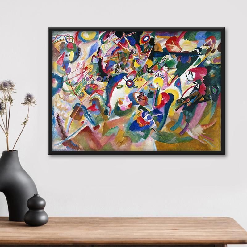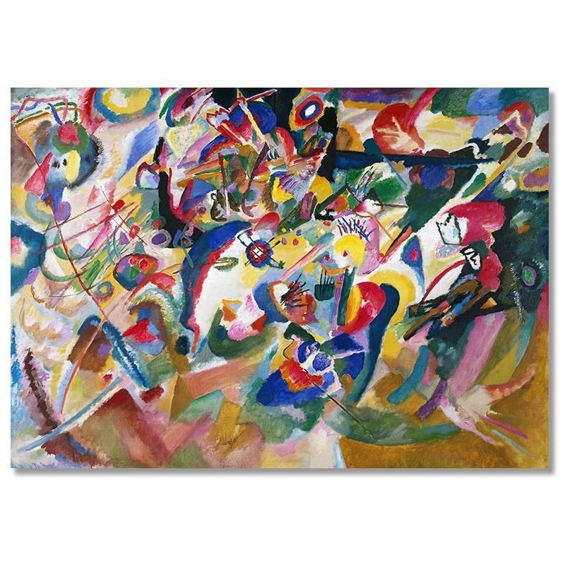 混沌と秩序の狭間で炸裂する、魂の咆哮!抽象芸術の金字塔である大作『コンポジションVII』の創造に向けた、画家の内面の激しい「感情の表現」を捉えた油彩作品です。キャンバスの中で、鮮烈な色彩と動的な線が渦を巻き、爆発し、絡み合い、見る者の感性に直接訴えかける劇的なエネルギーを放っています。すべての具象を手放し、色と形の純粋な力によって精神的な真実を描き出そうとしたカンディンスキーの芸術的革命の情熱が、この習作に凝縮されています。