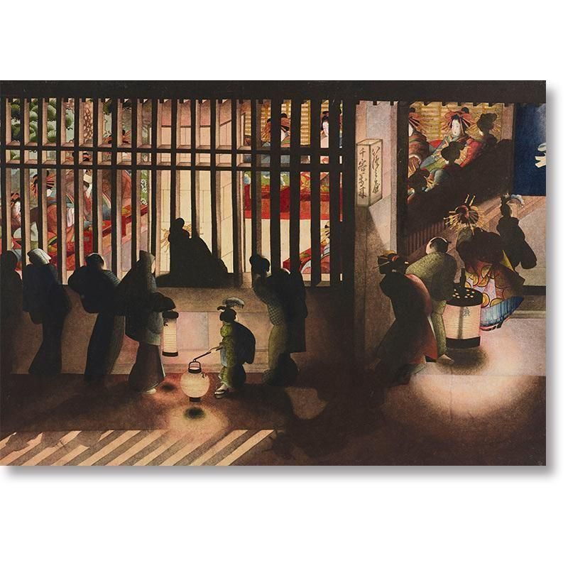 葛飾応為 吉原格子先之図 浮世絵 肉筆画 吉原 遊廓 光と影 明暗表現 キアロスクーロ 江戸時代 妓楼 遊女 提灯 シルエット 群衆 幻想的 階層 孤独 哀切 傑作 筆致 女性絵師 葛飾北斎 娘応為 アート 社会の闇